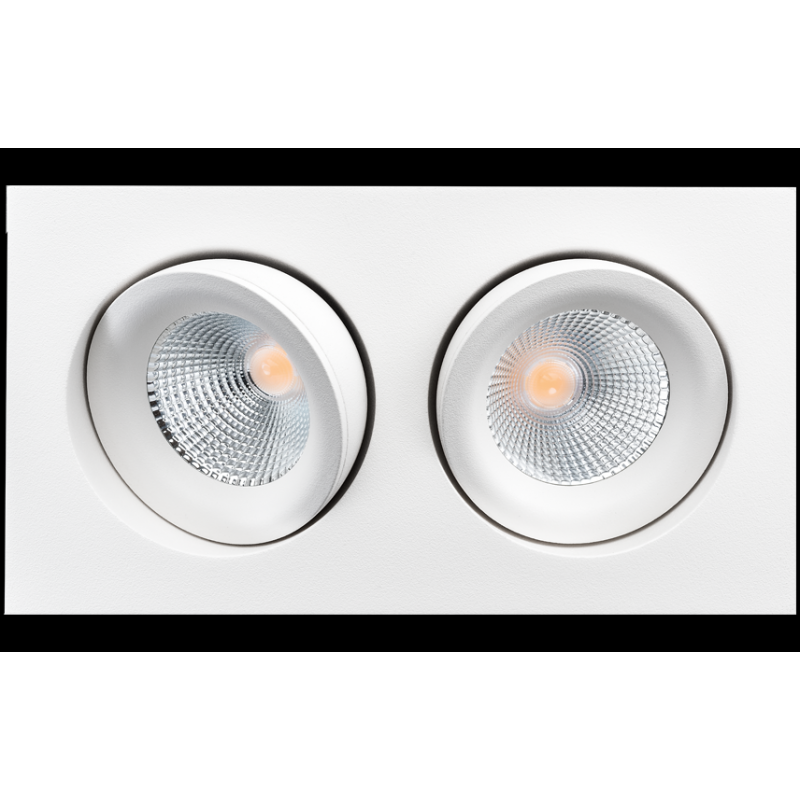 Description: Downlight, LED intérieur plafonnier downlight, blanc, 2x8W, 4000K. inclinable 30 degrés dans toutes les directions, driver incl., dimmable coupure de phase. découpe 83 mm. Mat.: aluminium, verre transparent. Classe III, IP44, faisceau 42 degrés, Ra>95, SDCM 2