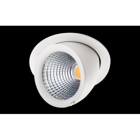 Description: Downlight, LED in-en extérieur plafonnier downlight, blanc, 31W, 3000K. inclinable dans une direction. Dali driver incl. matériau: aluminium, verre transparent. classe II, IP44, faisceau 40 degrés, Ra>90, SDCM 2, 2140 lm