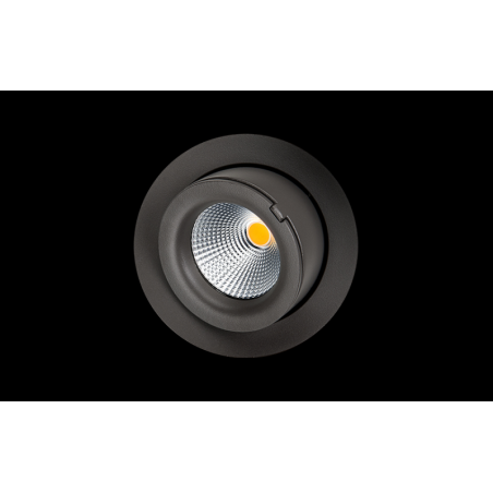 Description: Downlight, LED int et extérieur plafonnier downlight, graphite, 9W, 3000K. inclin. dans une direction. Driver incl., dimmable coupure de phase. découpe 83 mm. mat.: alu., verre transp. Classe II, IP44, faisceau 42 degrés, Ra>95, SDCM 2, 800 lm