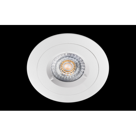 Description: Downlight, GU10 intérieur plafonnier downlight, blanc, 6,2W, 3000K. pas inclin. Driver incl., dimmable coupure de phase. découpe 83 mm. mat.: alu. Classe III, IP65, faisceau 36 degrés, Ra>80, SDCM 4, 455 lm