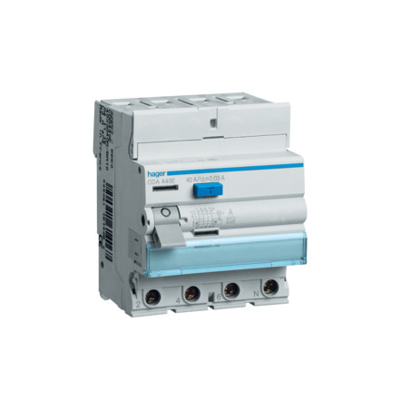 Emballage: 1 - 1 - 36 - 864 Marque: HagerRéférence: CDA440EEAN: 3250611614067Description: Interrupteur différentiel 4P 40A 30mA type A 4M.