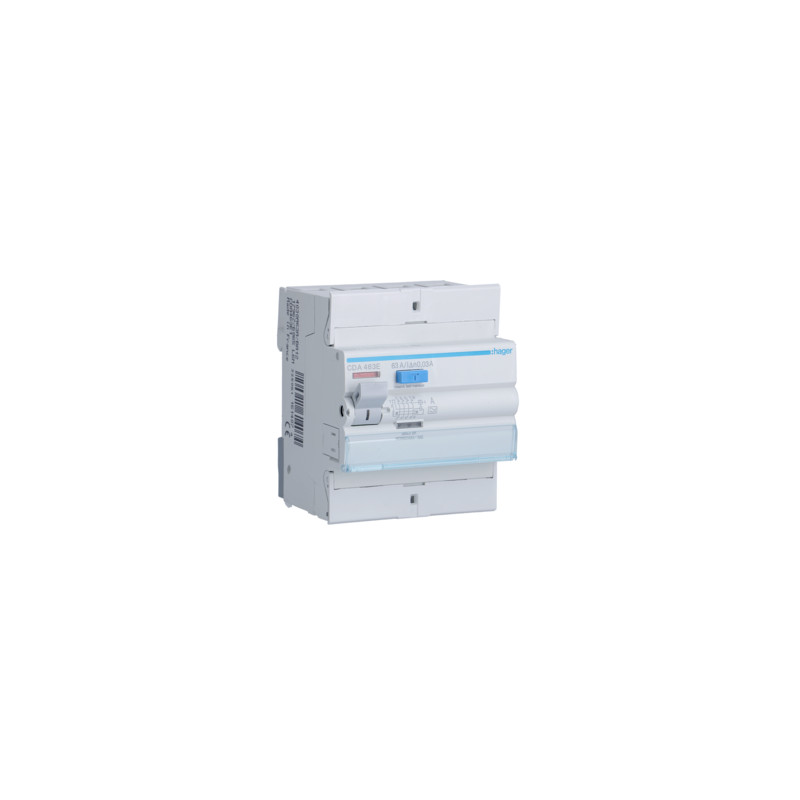 Emballage: 1 - 1 - 36 - 864 Marque: HagerRéférence: CDA463EEAN: 3250611614074Description: Interrupteur différentiel 4P 63A 30mA type A 4M.