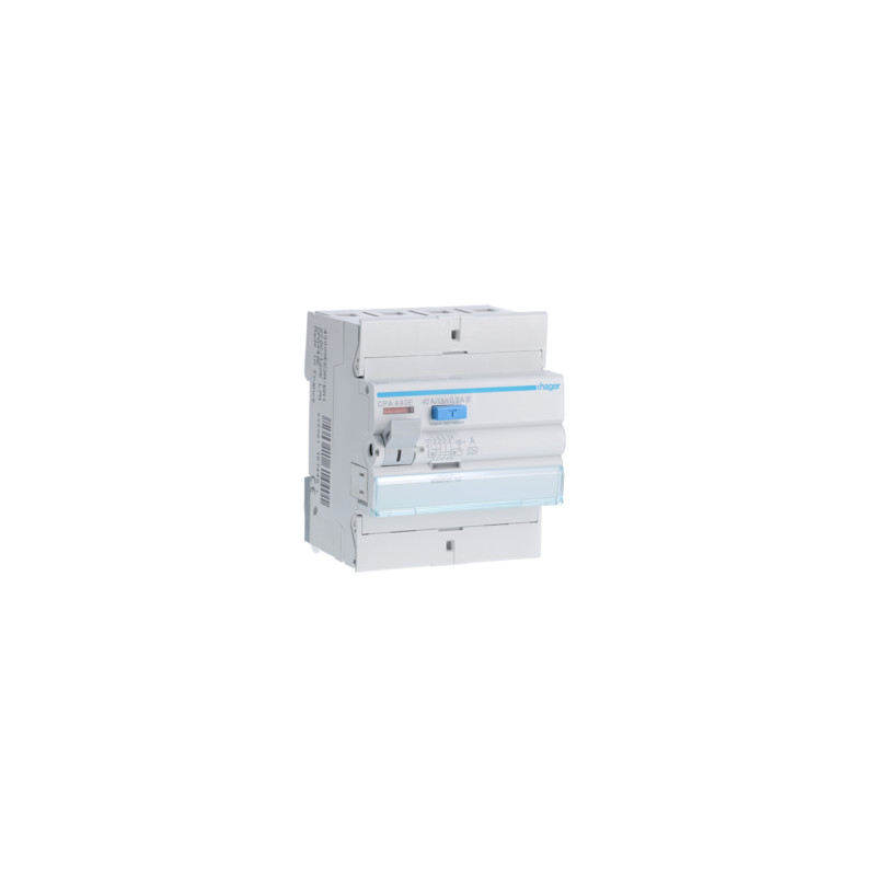 Emballage: 1 - 1 - 36 - 864 Marque: HagerRéférence: CPA440EEAN: 3250611614401Description: Interrupteur différentiel 4P 40A 300mA type A S 4M.