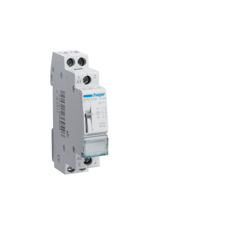 Emballage: 1 - 1 - 108 - 2592 Marque: HagerRéférence: EPN519EAN: 3250612369546Description: Télérupteur 16A 12V AC 1NO+1NF 1M.