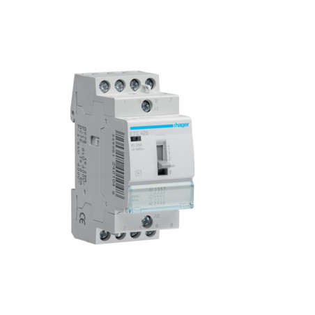 Emballage: 1 - 6 - 72 - 1728 Marque: HagerRéférence: ETC425EAN: 3250612401048Description: Contacteur J/N 4x25A 230V 4NO 2M.