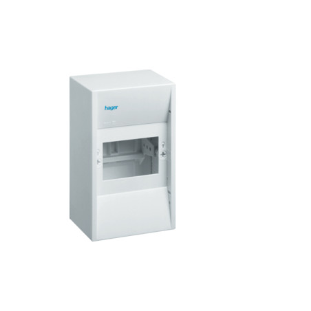 Emballage: 1 - 5 - 400 Marque: HagerRéférence: GD104EEAN: 3250612843213Description: Coffret cache-bornes mini gamma 1R. 4M..