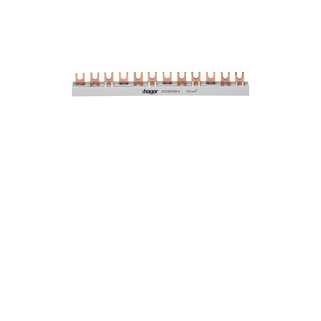 Emballage: 20 - 20 - 1000 Marque: HagerRéférence: KDN363BEAN: 3250613740962Description: Barre de pontage 3P 63A fourche 10mm² 57M
