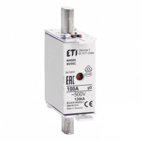 Emballage: 3 - 120Marque: ETIRéférence: 004181214EAN: 3838895353386Description: LV FUSE 100A DIN 00 GG https://teconex.eu/fr/produit/90d6c1f0-a2ae-834c-a753-65a9f5543517