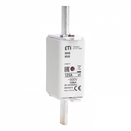 Emballage: 3 - 45Marque: ETIRéférence: 004183215EAN: 3838895353997Description: Fusible à couteaux taille 0 gG 125Ahttps://teconex.eu/fr/produit/31cb560b-fa31-f648-96e5-1e6a3d274856
