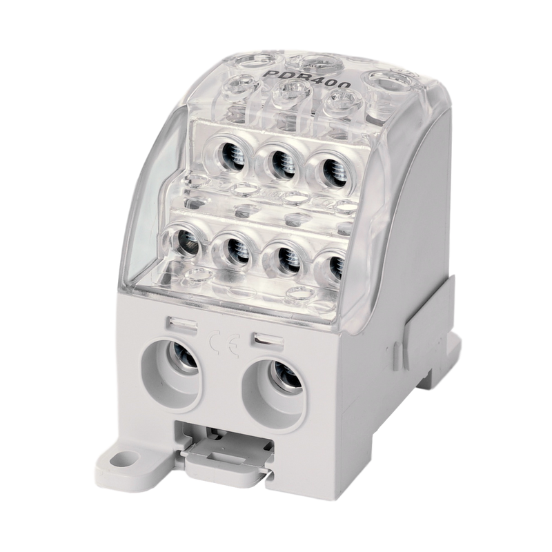 Description: Borne de distr. PDB400 1p 120, 2x35, 3x25, 4x16mm² Cu+Al grise