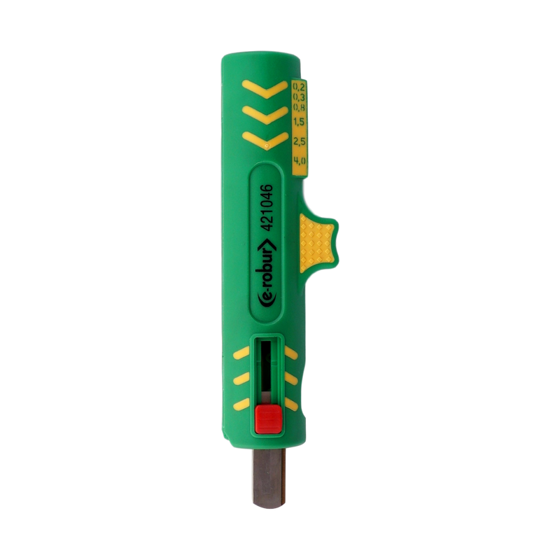 Emballage: 1Marque: E-RoburRéférence: 421046EAN: 3508194210467Description: Outil à dénuder et dégainer 0,2-4 mm2https://teconex.eu/fr/produit/5c795ca5-8786-5041-9587-1a02c8f64423