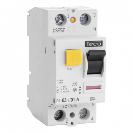 Emballage: 1 - 60Marque: TeconexRéférence: F963201AEAN: 4015081545261Description: Inter. diff. Teco 2P 63A 100mA Type Ahttps://teconex.eu/fr/produit/3c0bcd98-fb40-a64f-a365-5a1d856bf504