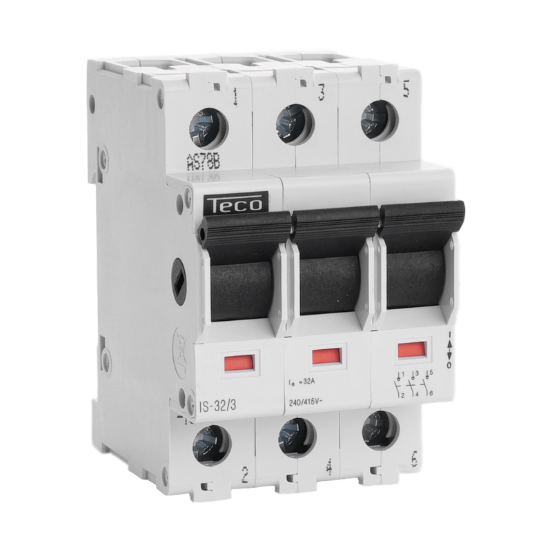 Emballage: 4 - 40Marque: TeconexRéférence: IS323EAN: 4015081535125Description: Interrupteur sectionneur Teco 3P 32Ahttps://teconex.eu/fr/produit/d013372a-23e4-2d4f-906b-5fc54c778164
