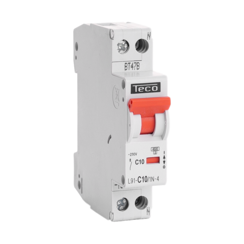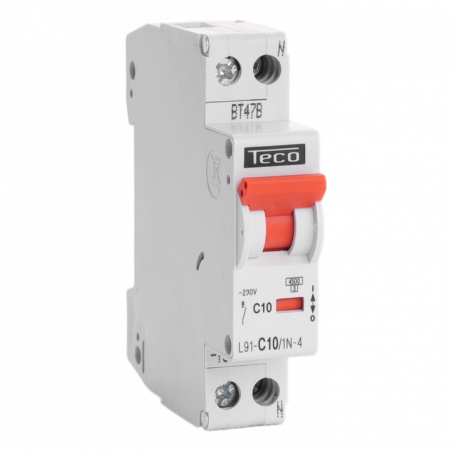Disjoncteur Teco 1N 10A 4,5kA Courbe C 1mod.