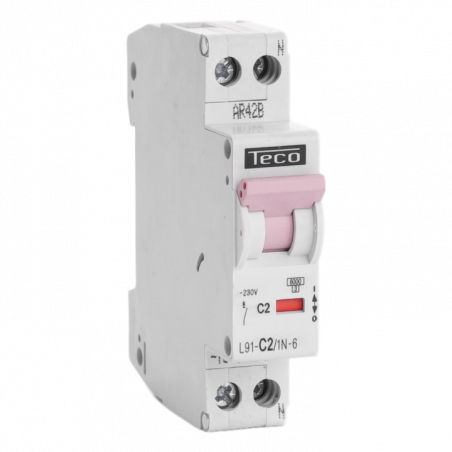 Disjoncteur Teco 1N 2A 6kA Courbe C 1mod.