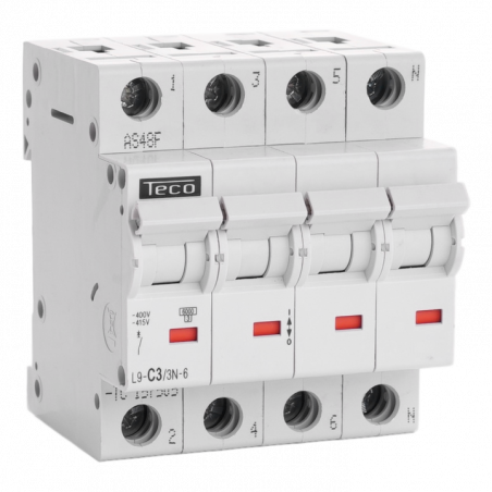Emballage: 3 - 30Marque: TeconexRéférence: L9C33N6EAN: 4015081540952Description: Disjoncteur Teco 3N 3A 6kA Courbe Chttps://teconex.eu/fr/produit/b0d486e9-1f72-d54b-967d-0356bb1f970c