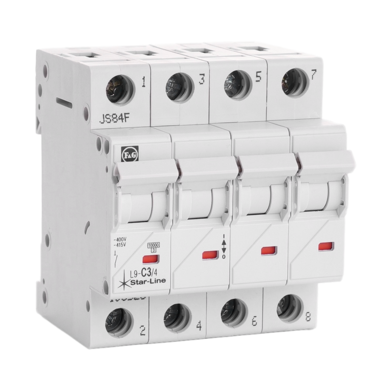 Emballage: 3 - 30Marque: TeconexRéférence: L9C34EAN: 4015081538591Description: Disjoncteur Teco 4P 3A 10kA Courbe Chttps://teconex.eu/fr/produit/38c9e72d-cbb0-0f4e-b49c-e69585dc6545