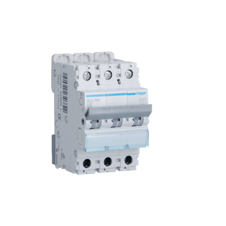 Emballage: 1 - 4 - 48 - 1152 Marque: HagerRéférence: MCA350EAN: 3250614346842Description: Disjoncteur 6kA - C - 3P - 50A - 3M.