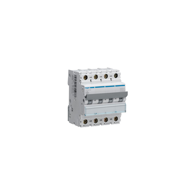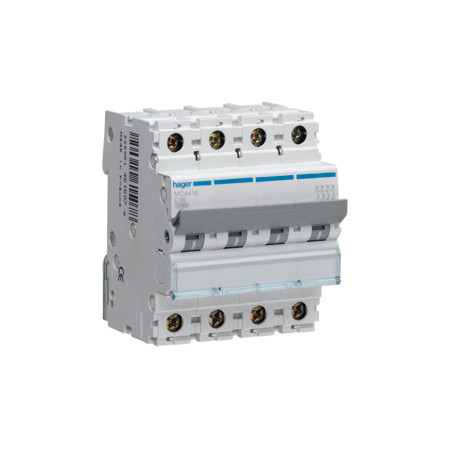 Emballage: 1 - 3 - 36 - 864 Marque: HagerRéférence: MCA416EAN: 3250614346941Description: Disjoncteur 6kA - C - 4P - 16A - 4M.