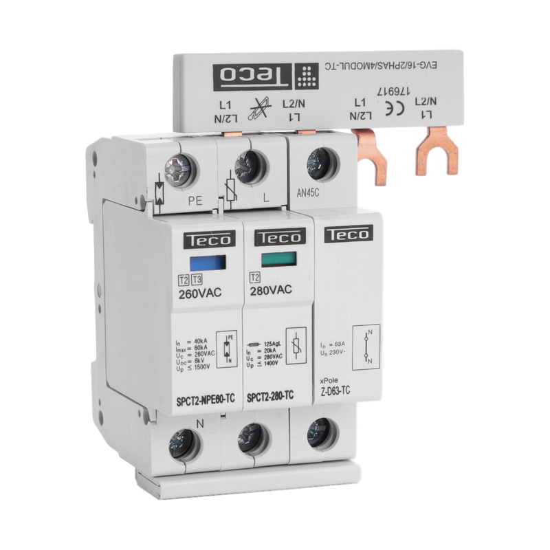 Emballage: Marque: TeconexRéférence: SPCT22801NPEBBEAN: 4015081717163Description: Type 2 parafoudre Teco 1p+N + peignehttps://teconex.eu/fr/produit/c6aba256-5731-0542-8853-2453169b5df7