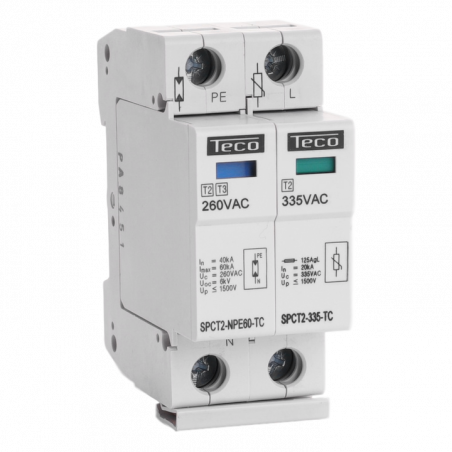 Emballage: Marque: TeconexRéférence: SPCT23351NPEEAN: 4015081704279Description: Type 2 parafoudre Teco 1p+N 335Vhttps://teconex.eu/fr/produit/5092410d-51b7-2045-8711-55bd1b985fa2