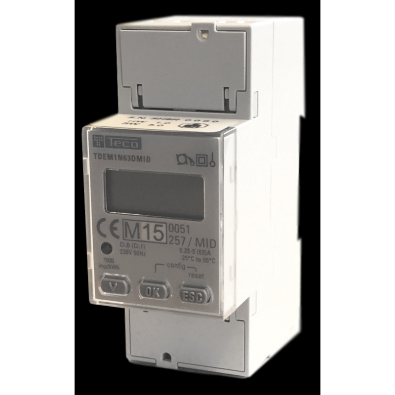 Description: Compteur d'énergie digital Teco 1N 1mod 63A 2 comptages MID