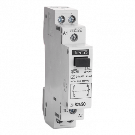Description: Relais d'installation Teco 24VAC 20A 1NO+1NF