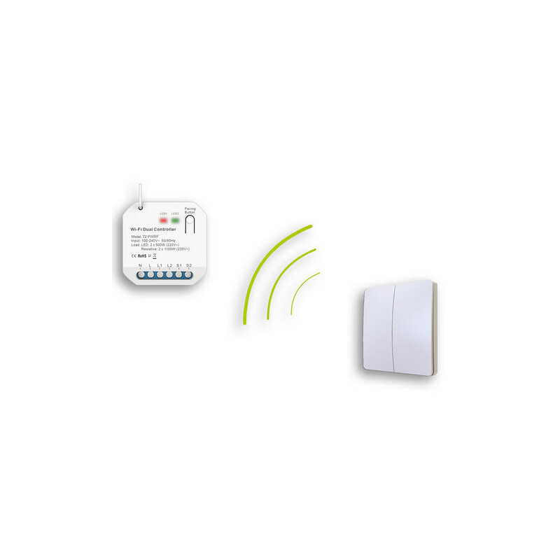 1× T2 PWRF ACTIONNEUR + 1× T2S TÉLÉCOMMANDE 2 CANAUX - 2 NO × 5 A