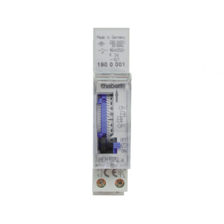 Emballage: 1Référence: MEM190AMarque: THEBENRéférence fabricant: 1900001EAN: 4003468190050Description: HORLOGE 7J AVEC RÉSERVE DE MARCHE 230V 4 5-60HZ 1NO 16A