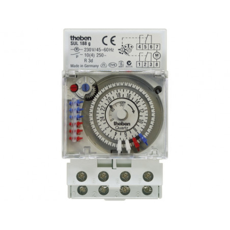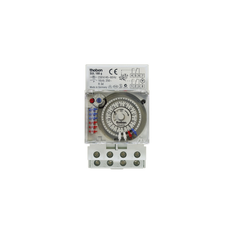 Emballage: 1Référence: SUL188GMarque: THEBENRéférence fabricant: 1880033EAN: 4003468181003Description: HORLOGE 24H AVEC RÉSERVE DE MARCHE 230V 45-60HZ 2CO 10A