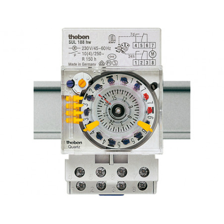 Emballage: 1Référence: SUL188HWMarque: THEBENRéférence fabricant: 1880108EAN: 4003468181010Description: HORLOGE 24H/7J AVEC RÉSERVE DE MARCHE 230V 45-60HZ 2CO 10A