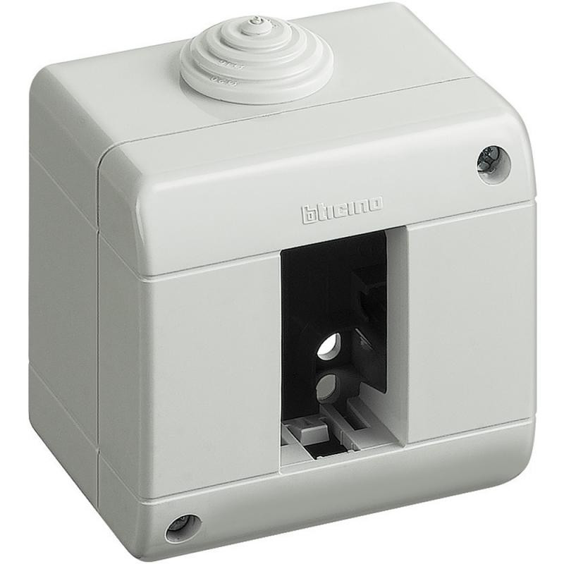 Description: Boîtier saillie Idrobox IP 40 - 1 module horizontale - 1 entrée de câble diam. 23 mm - 2 entrées défonçables diam. 23 mm - gris