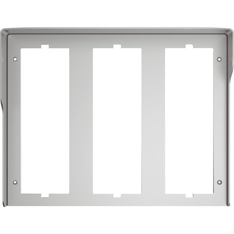 Emballage: 1 - 1 - 30 Marque: BticinoRéférence: 350591EAN: 8005543458198Description: Vidéoparlophonie - Protection contre la pluie 9 modules All Metal
