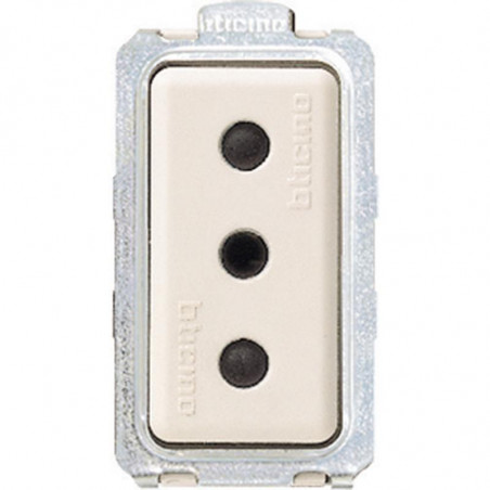 Description: Prise de courant Magic 2P+T - 250 V - 16 A - entraxe 26 mm - diamètre 5 mm (norme Italienne) - 1 module