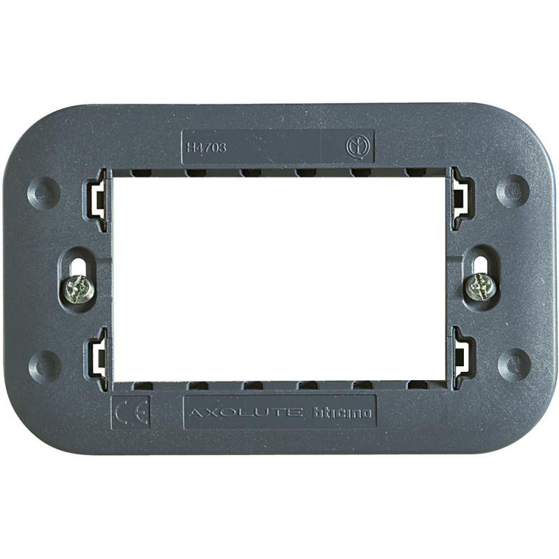Emballage: 1 - 100 - 6300 Marque: BticinoRéférence: H4703EAN: 8012199740454Description: Support Axolute - pour 3 modules - fixation à vis