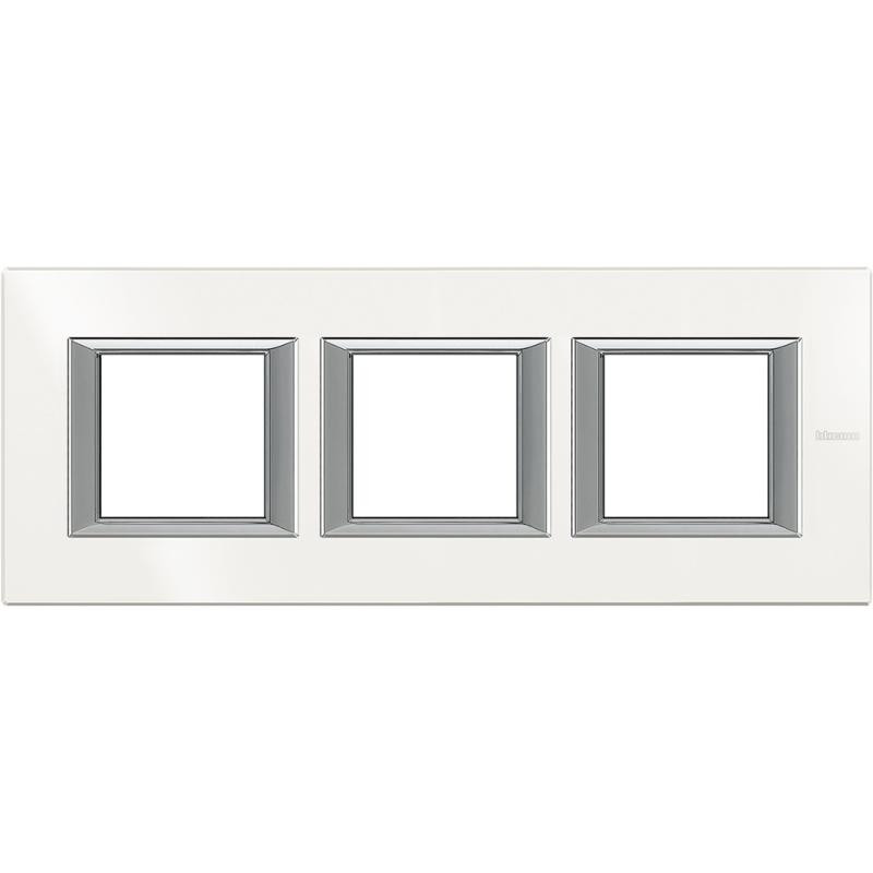 Emballage: 1 - 1 - 28 Marque: BticinoRéférence: HA4802M3HHDEAN: 8012199977379Description: AXOLUTE - PLAQUES 3X2 MODULES BLANC METAL