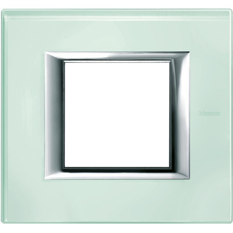 Emballage: 1 - 1 - 27 Marque: BticinoRéférence: HA4802VKAEAN: 8012199789651Description: Plaque rectangulaire Axolute - verre Kristall - 2 modules - 104 x 95 mm