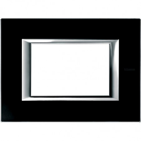 Emballage: 1 - 1 - 24 Marque: BticinoRéférence: HA4803VNNEAN: 8012199758541Description: Plaque rectangulaire Axolute - verre nuit noire - 3 modules - 127 x 95 mm