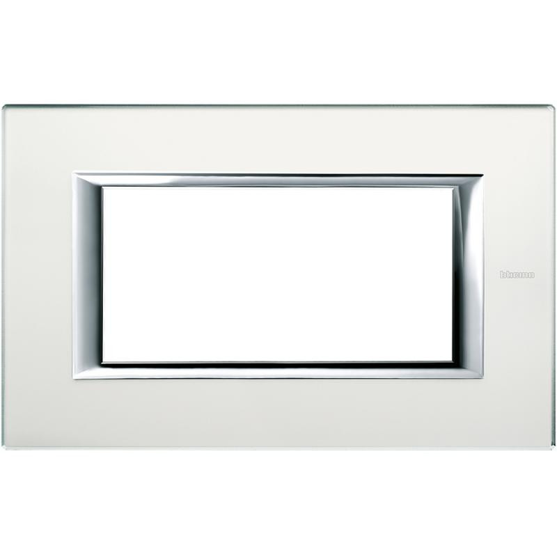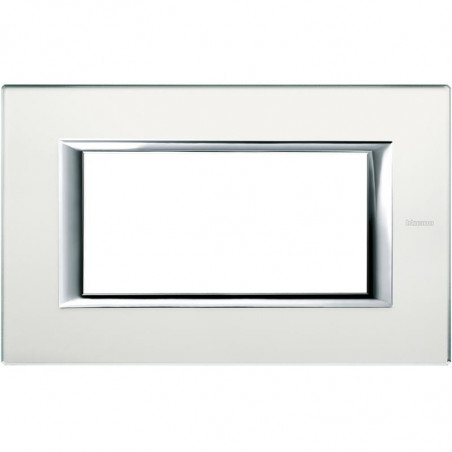 Emballage: 1 - 1 - 20 Marque: BticinoRéférence: HA4804VSAEAN: 8012199758602Description: Plaque rectangulaire Axolute - verre miroir dépoli - 4 modules - 150 x 95 mm