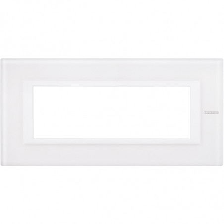 Emballage: 1 - 1 - 17 Marque: BticinoRéférence: HA4806VBBEAN: 8012199980225Description: AXOLUTE - PLAQUES 6 MODULES VERRE BLANC