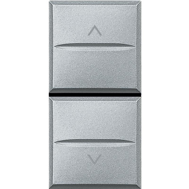 Description: Double bouton-poussoir Axolute - unipolair NO + NO - avec blocage mutuel - 250 V - 10 A - gris clair - 1 module