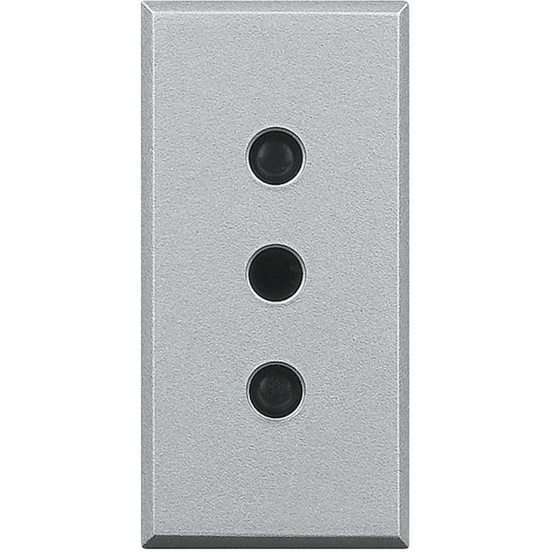 Description: Prise de courant Axolute - 2P+T - 250 V - 10 A - norme italienne - entraxe 19 mm - gris clair - 1 module