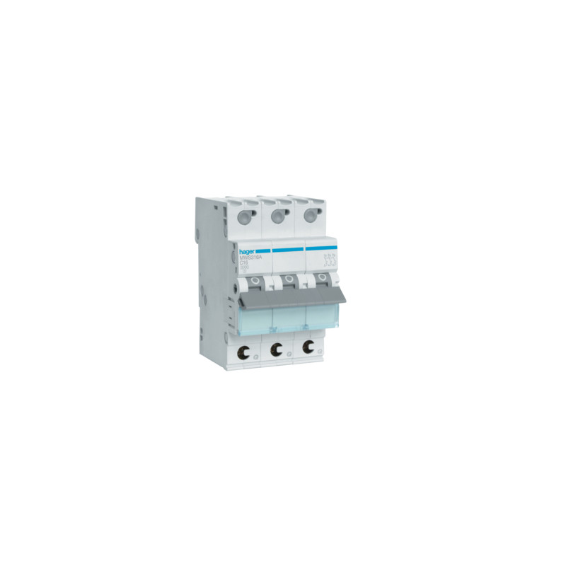 Emballage: 1 - 4 - 48 - 1152 Marque: HagerRéférence: MWS316AEAN: 3250614342226Description: Disjoncteur 3kA - C - 3P - 16A - 3M. - quickconnect