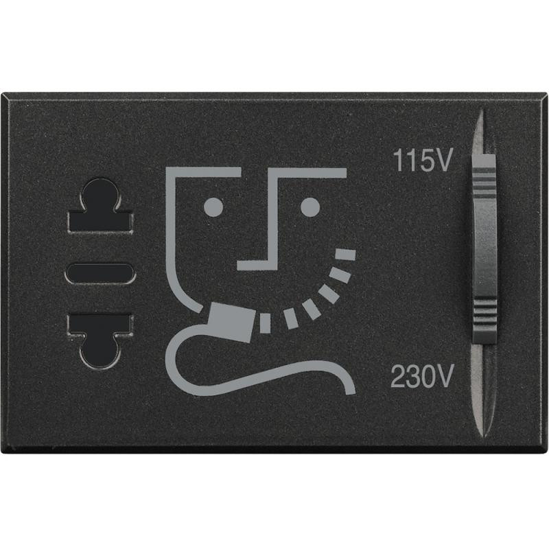 Description: Prise rasoir Axolute - entrée 230 V - 50/60 Hz - sortie 115/230 V - 20 VA - gris foncé - 3 modules