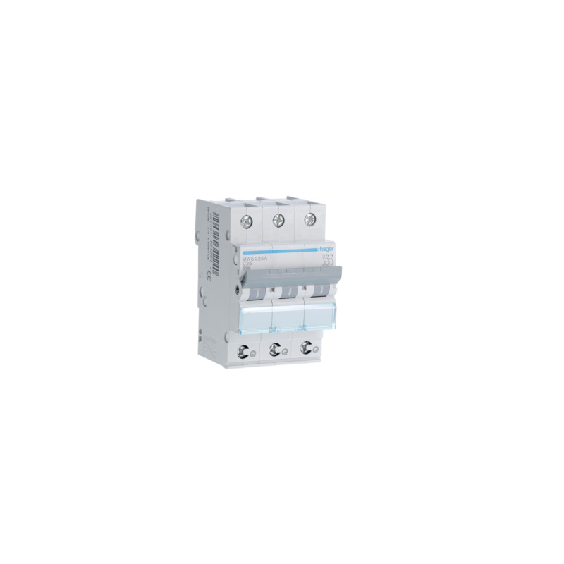 Emballage: 1 - 4 - 48 - 1152 Marque: HagerRéférence: MWS325AEAN: 3250614342240Description: Disjoncteur 3kA - C - 3P - 25A - 3M. - quickconnect