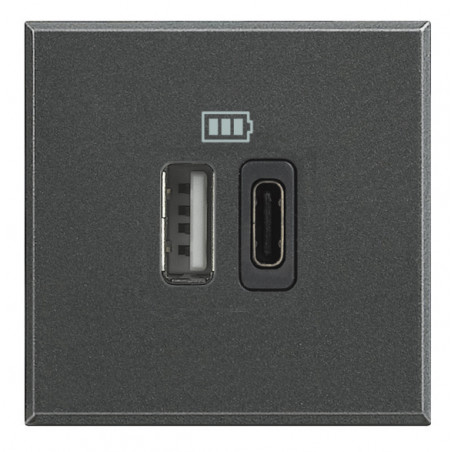 Emballage: 1 - 1 - 120 Marque: BticinoRéférence: HS4287C2EAN: 8005543622155Description: Axolute chargeur USB type A+C-3A- 2 modules anthracite