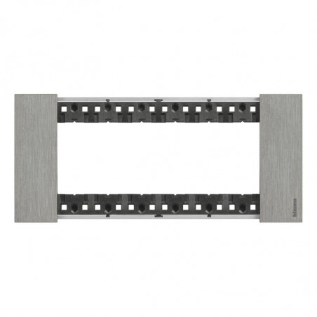 Emballage: 1 - 1 - 45 Marque: BticinoRéférence: KA4806ZGEAN: 8005543614761Description: Living Now plaque 6 modules acier pour support réf K4706