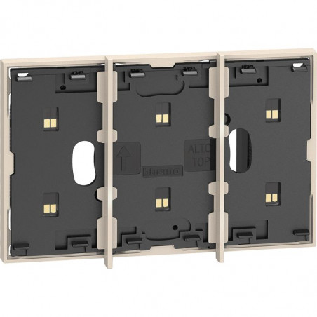 Emballage: 1 - 5 - 40 Marque: BticinoRéférence: KM8102P1EAN: 8005543656334Description: MH - Support de 2+1 modules LNOW finition sable