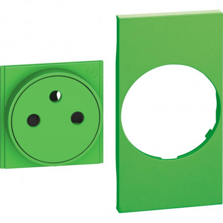 Description: Living NOW enjoliveur prise affleurante 2P+T verte 2 modules pour prise 2P+T