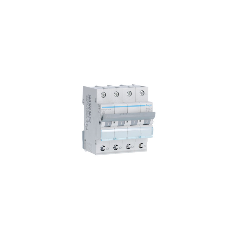 Emballage: 1 - 3 - 36 - 864 Marque: HagerRéférence: MWS632AEAN: 3250614342387Description: Disjoncteur 3kA - C - 3P+N - 32A - 4M. - quickconnect